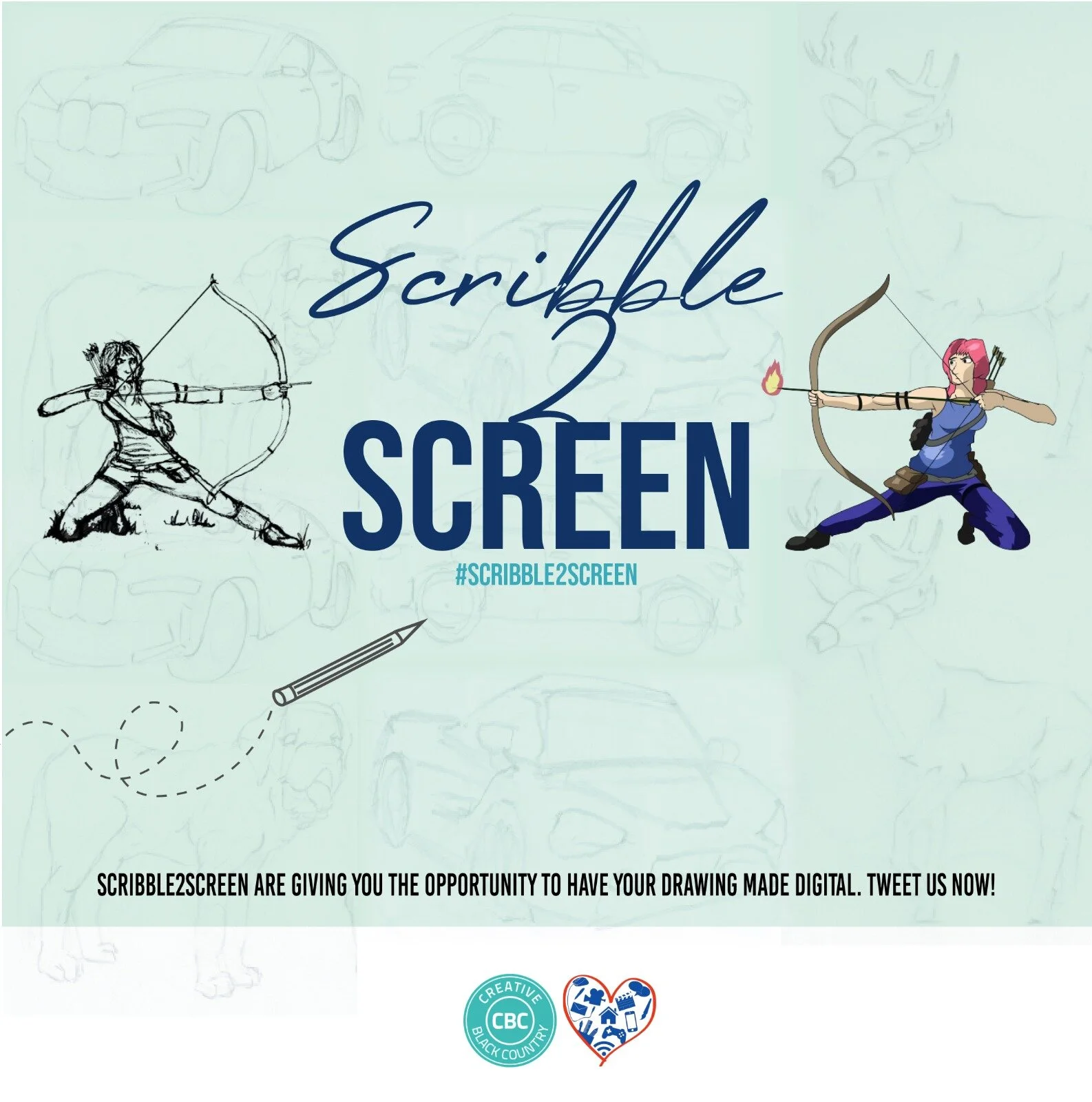 You can see the final versions tweeted at @Scribble2Screen as well as work-in-progress images for participants to see their images evolve.