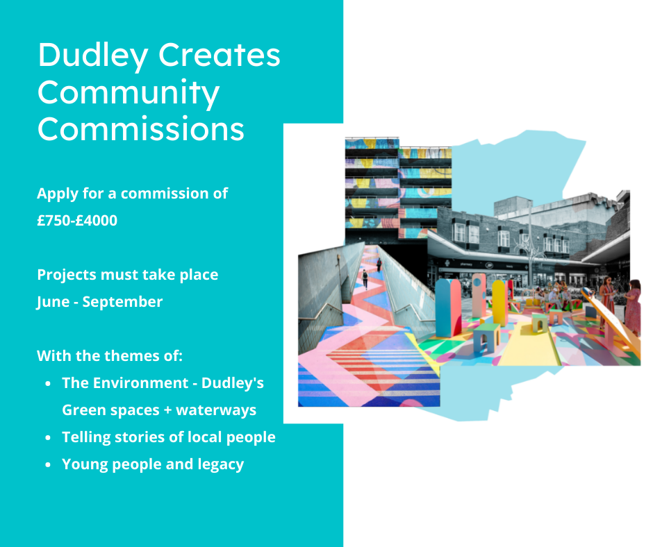 Creative Black Country (CBC), alongside our partner Dudley Metropolitan Borough Council (DMBC) with support from CoLab Dudley, is offering commissions of £750 - £4000 for projects that develop creative activity with and by local communities across the Dudley borough.