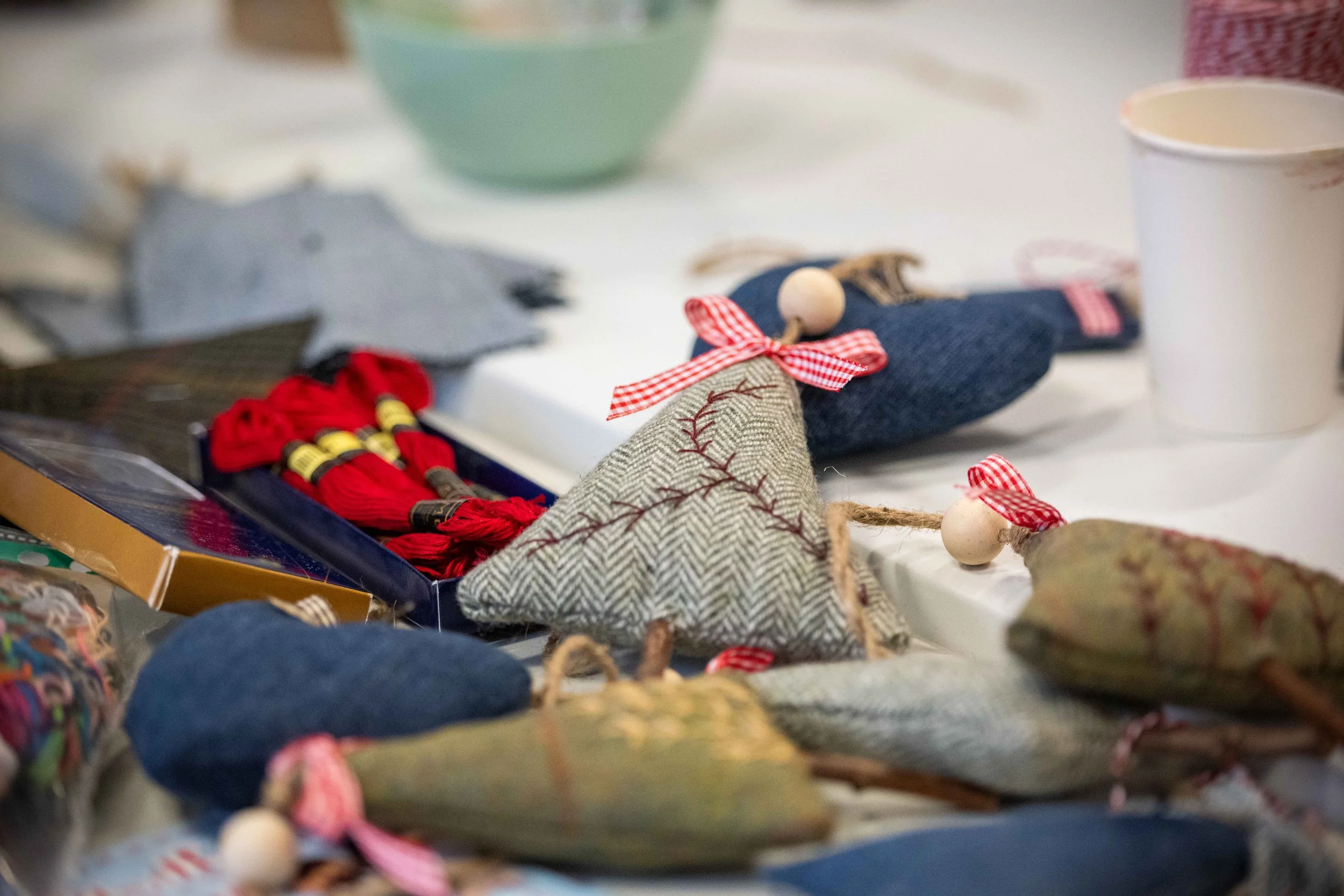 Hannah and Lisa hosted 5 creative workshops throughout November and December 2024 focussing on hand sewing and making items to combat the cold weather.